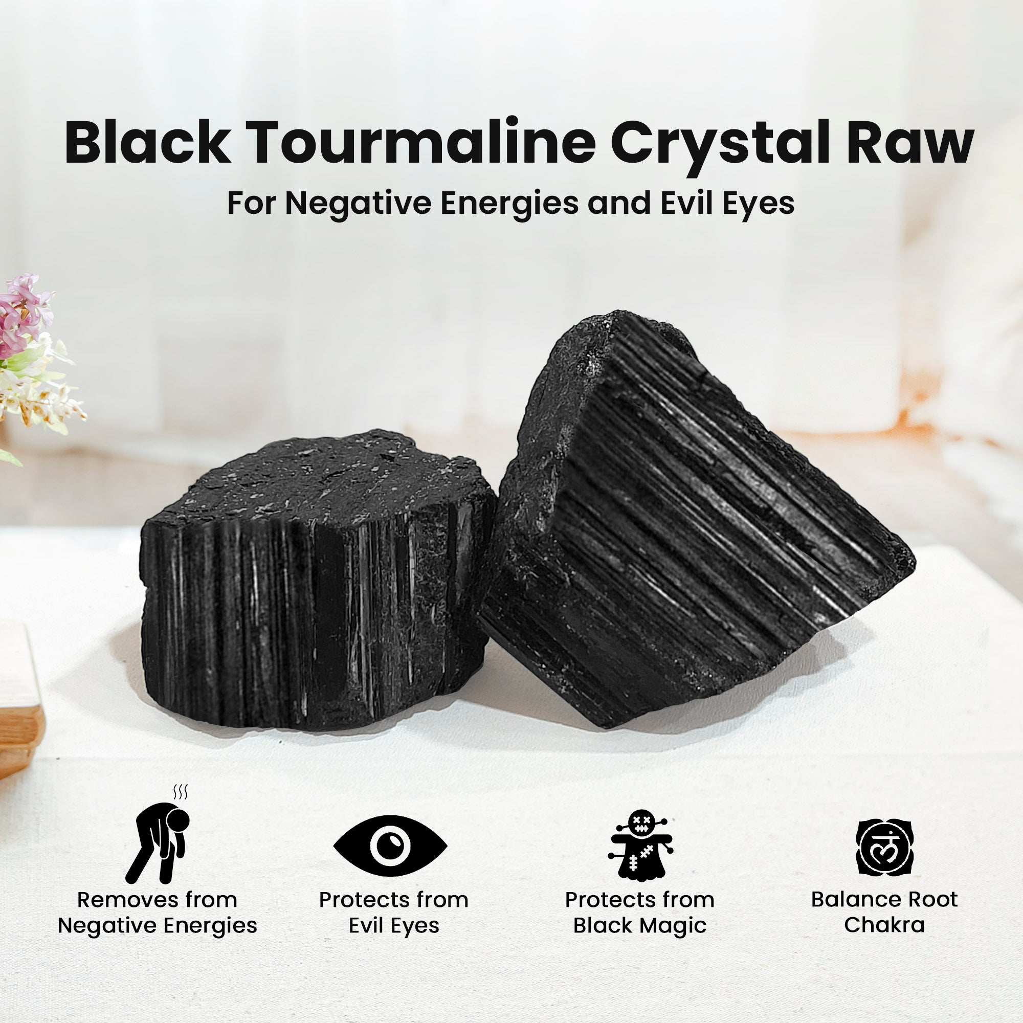 Size of Black Tourmaline Stone Original - We will send 2 to 4 crystal stone total - 200 gm. This is a protective black stone that protects you from psychic attack and negative energy