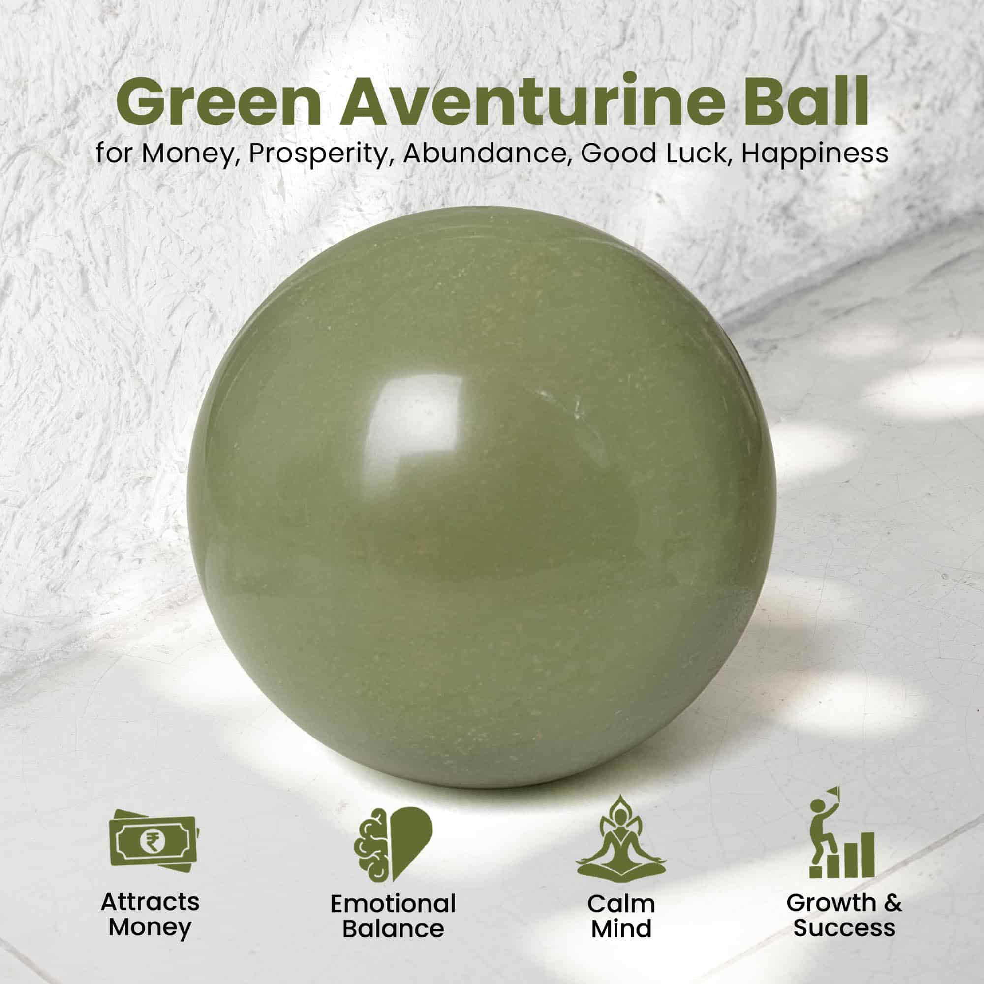 The Green Aventurine crystal ball is used to bring good luck, wealth, and prosperity. People believe it has special powers, so they use it to attract positive things like money and good fortune. By keeping this crystal ball in your home or workspace, some think it can create a positive atmosphere that attracts opportunities and helps with decision-making. While there's no scientific proof for these ideas, many like using the Green Aventurine crystal ball for its pretty appearance and the belief that it can bring good vibes for a better and more fortunate life.