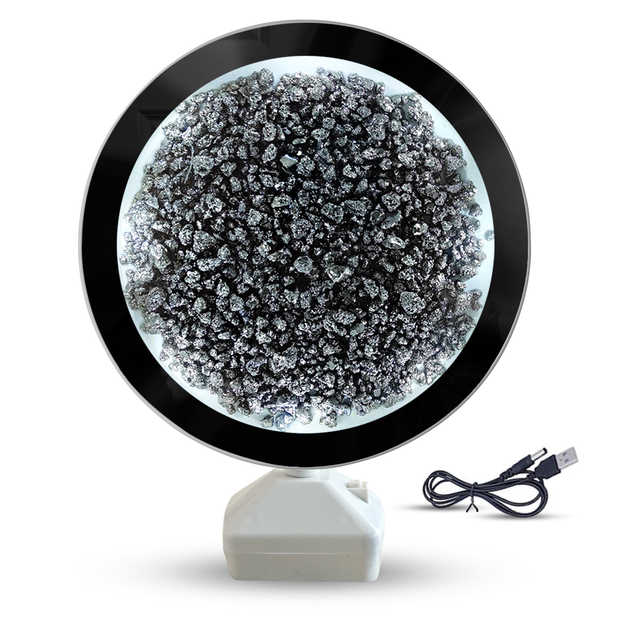 Pyrite mirror has LED lights in it. When you turn on the LED lights, the pyrite mirror starts shining, attracting money, good luck, and success in the life of the user.