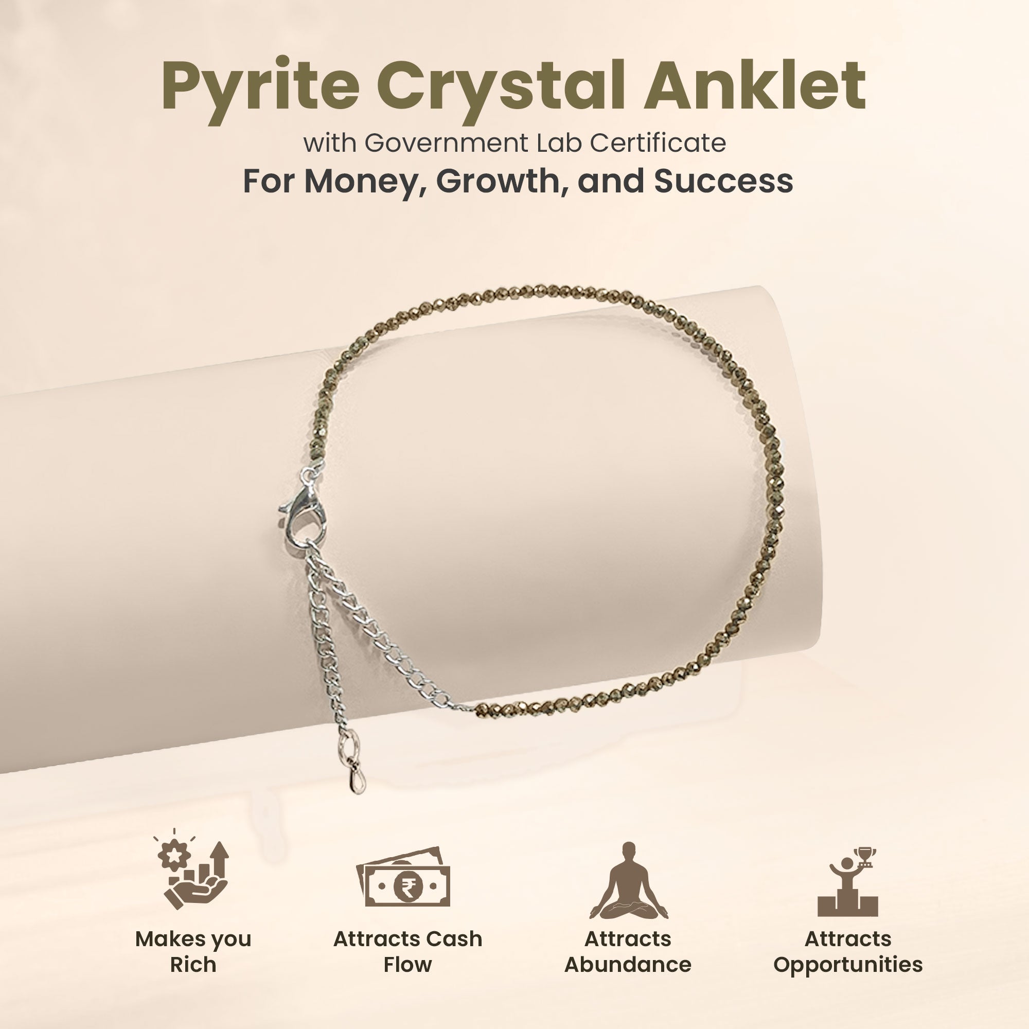 Pyrite Crystal Anklet can be used by girls and women of all ages, genders and all zodiac signs. It can be used by anyone who wants to attract money, prosperity and wealth. Women can wear this crystal anklet to attract money and wealth.
