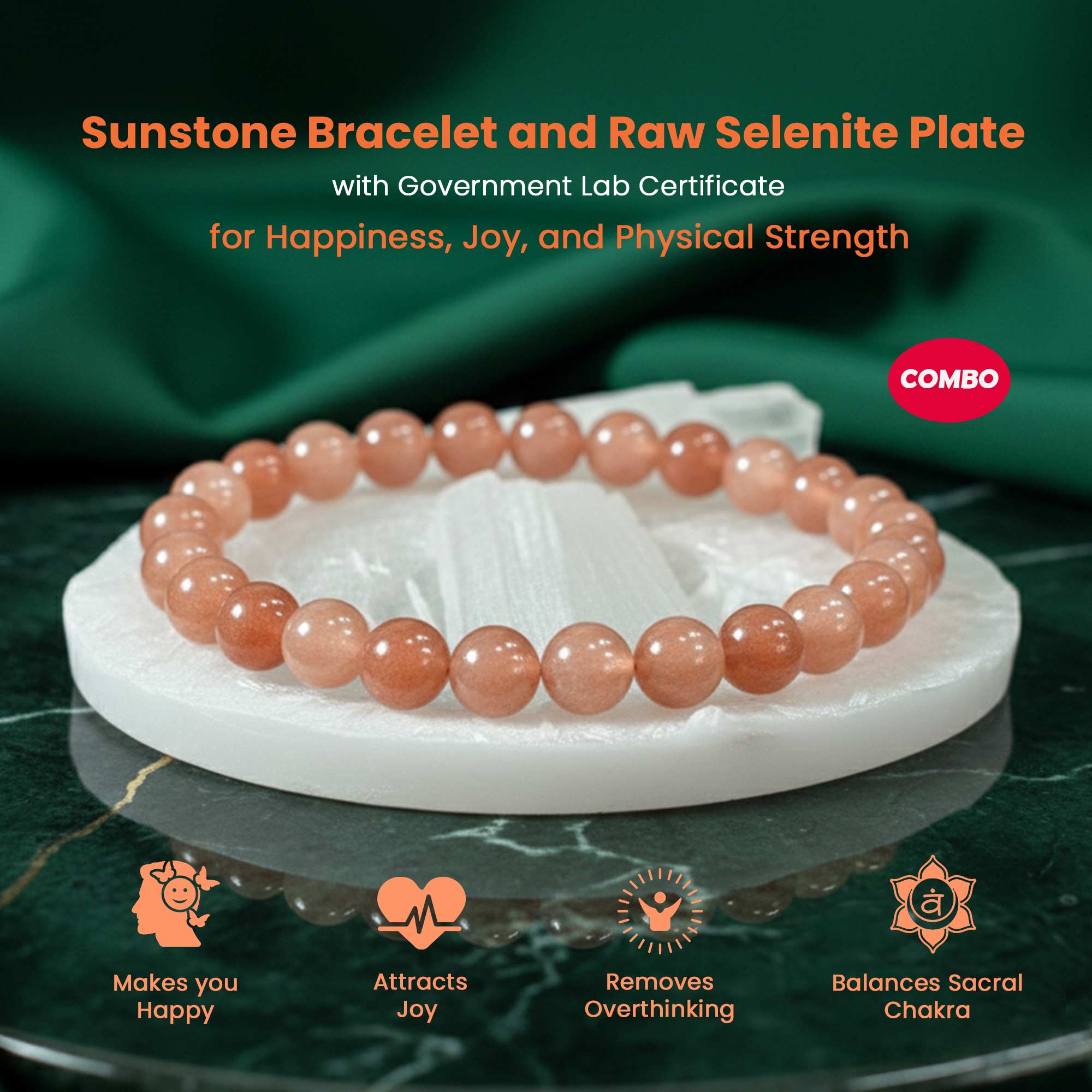 The Sunstone Bracelet with Raw Selenite Plate combo can be used by anyone, as it is suitable for all zodiac signs, all rashis, all age groups, and all genders. This combo is ideal for people who want to attract happiness, confidence, positivity, motivation, and mental clarity. It is helpful for those who feel low, stressed, or stuck in life, as the Sunstone bracelet uplifts energy and encourages courage, while the selenite plate cleanses negative energy and keeps the surroundings peaceful. This combination helps the wearer stay positive, confident, emotionally balanced, and surrounded by good energy every day.
