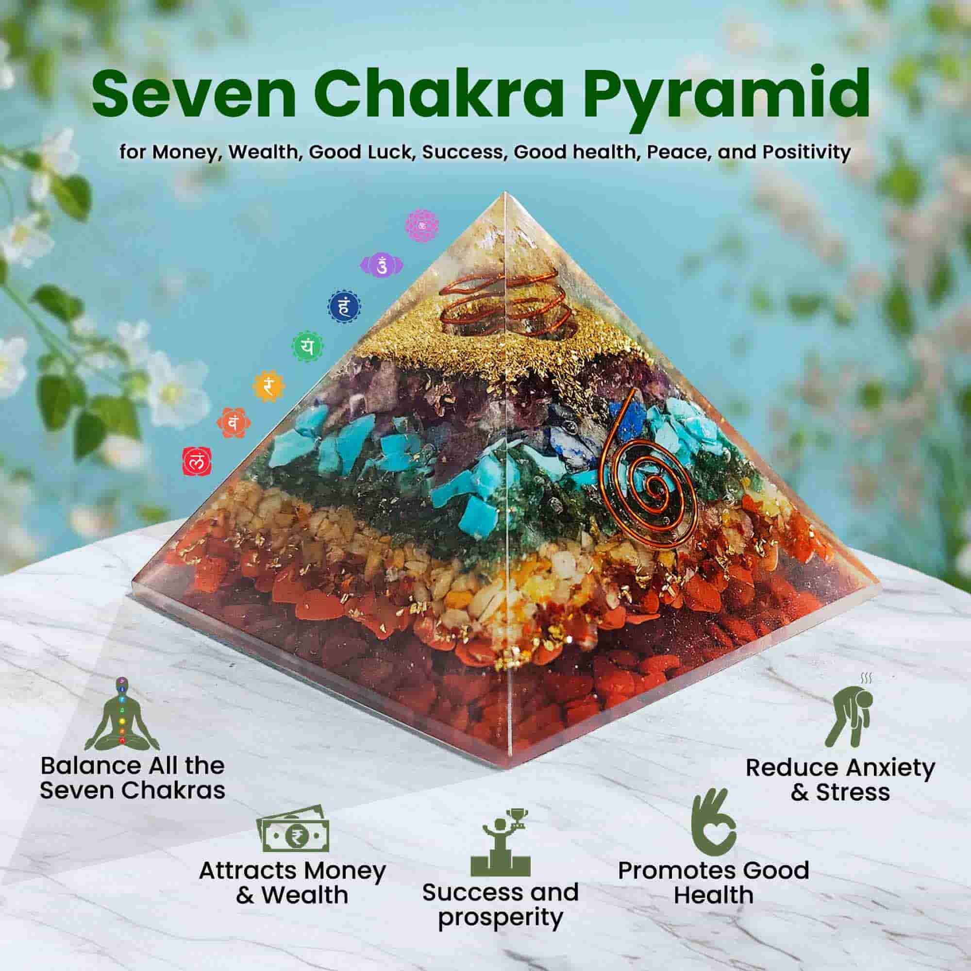 The Seven Chakra Pyramid can be used by anyone who want to attract Money, Success, and Prosperity, promote Good health, balance all the seven chakras, attract Peace, and Harmony. This Seven chakra crystal pyramid has the power of seven natural crystals and the orgone energy of the pyramid so it empowers your body and mind to stay strong. It enables several new opportunities, attracts money & good luck, enhances communication and intellectual skills, promotes good health, and so on. Keep this pyramid at home or office to harness its energies. This pyramid is highly recommended for each person due to its strong healing energies.